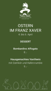 Was es gibt, das erfahren Sie auf unserer Tafel, die wir direkt vor dem Wirtshaus Franz Xaver aufgestellt haben – und auf Instagram